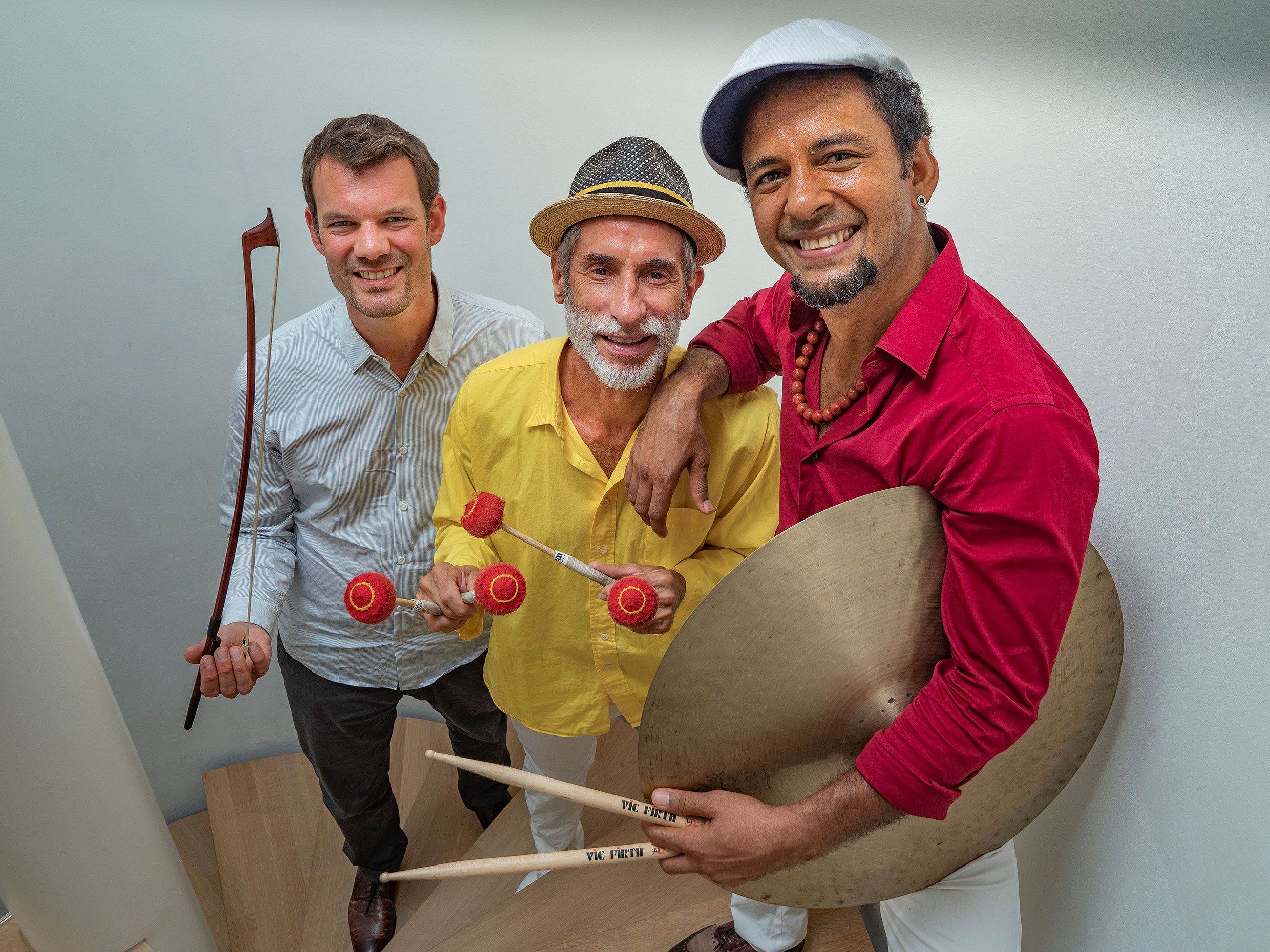 Die gezupften oder mit dem Bogen gestrichenen Saiten des Kontrabasses von Thomas Lähns und die geschlagenen oder gestrichenen Metallplatten des Vibraphons von Erich Fischer ergeben reizvolle Klangfarben. Die Trommeln und Becken unseres kubanischen Meister-Percussionisten bereichern die Klangwelt von BASSIC VIBES entscheidend. Yuvisney Aguilar begleitet sehr gefühlvoll, spielt aber auch begeisternde Soli.